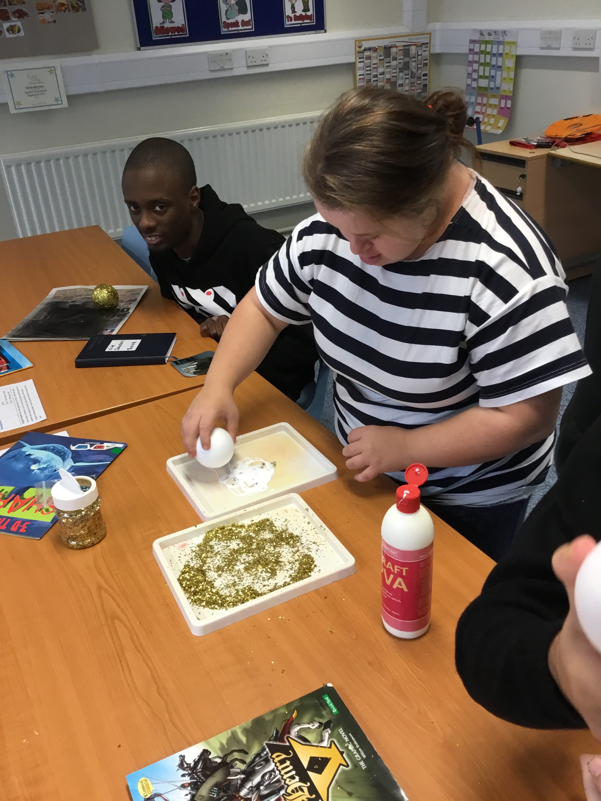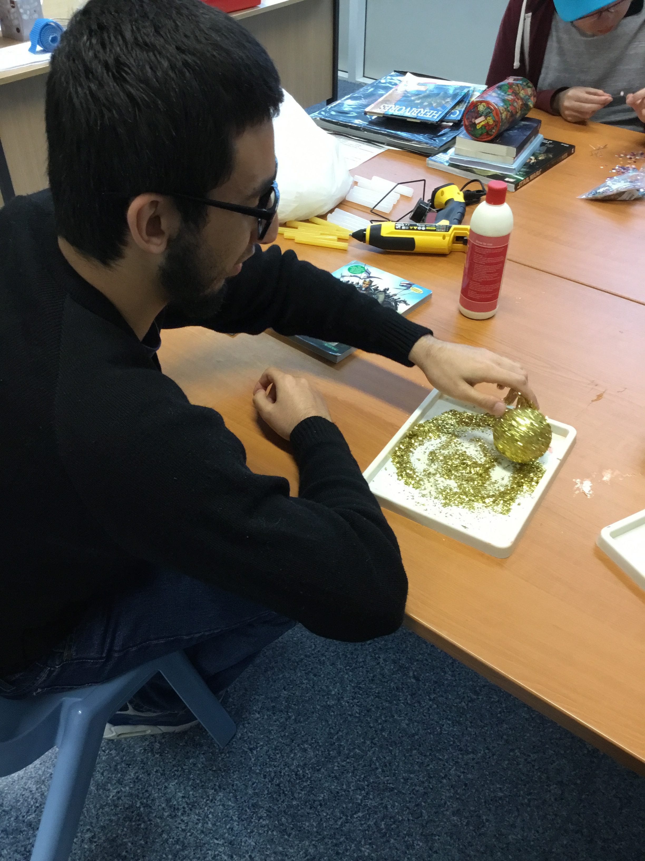 Thrive have been getting ready for Christmas! Making sparkly decorations to sell.