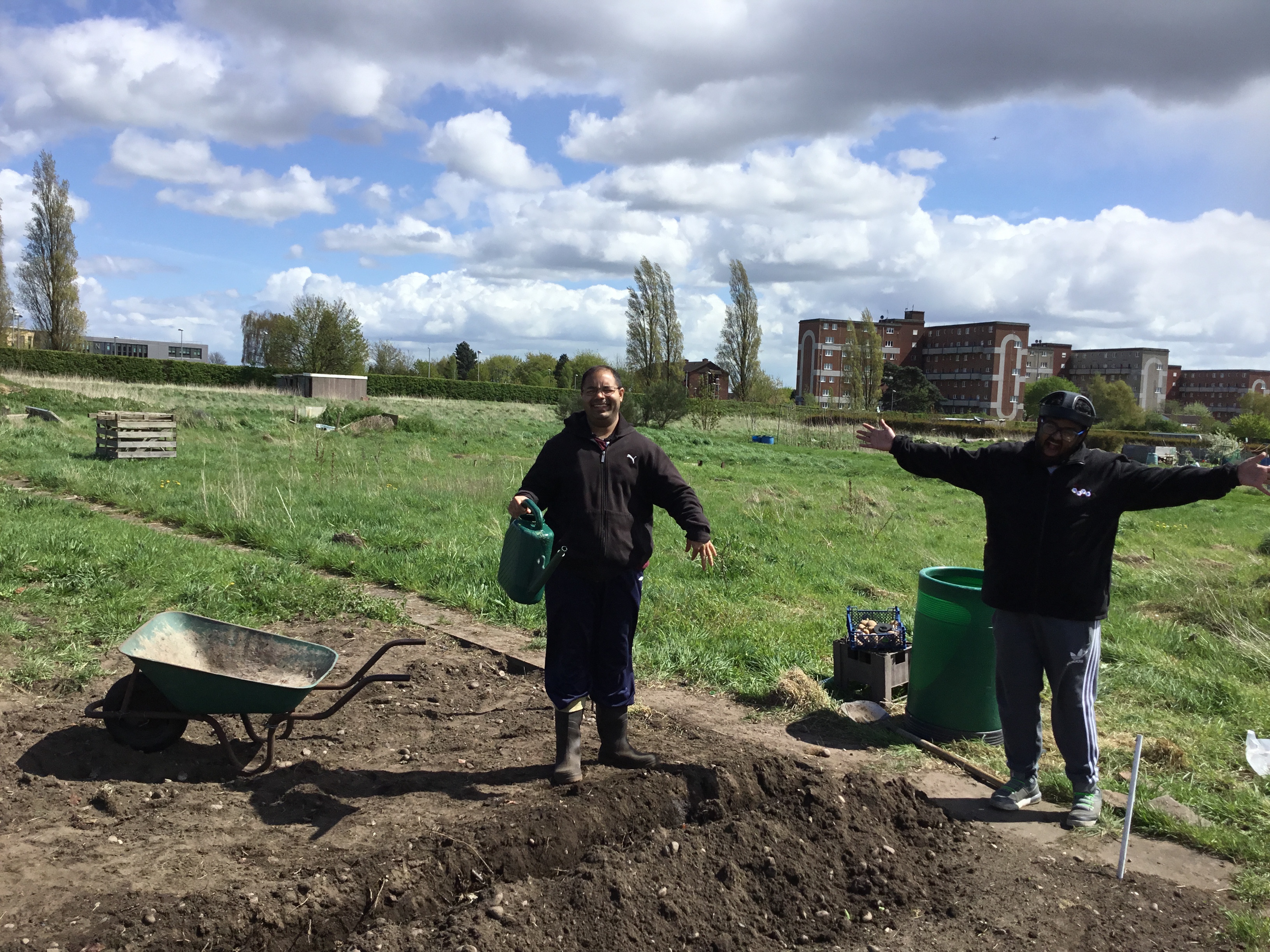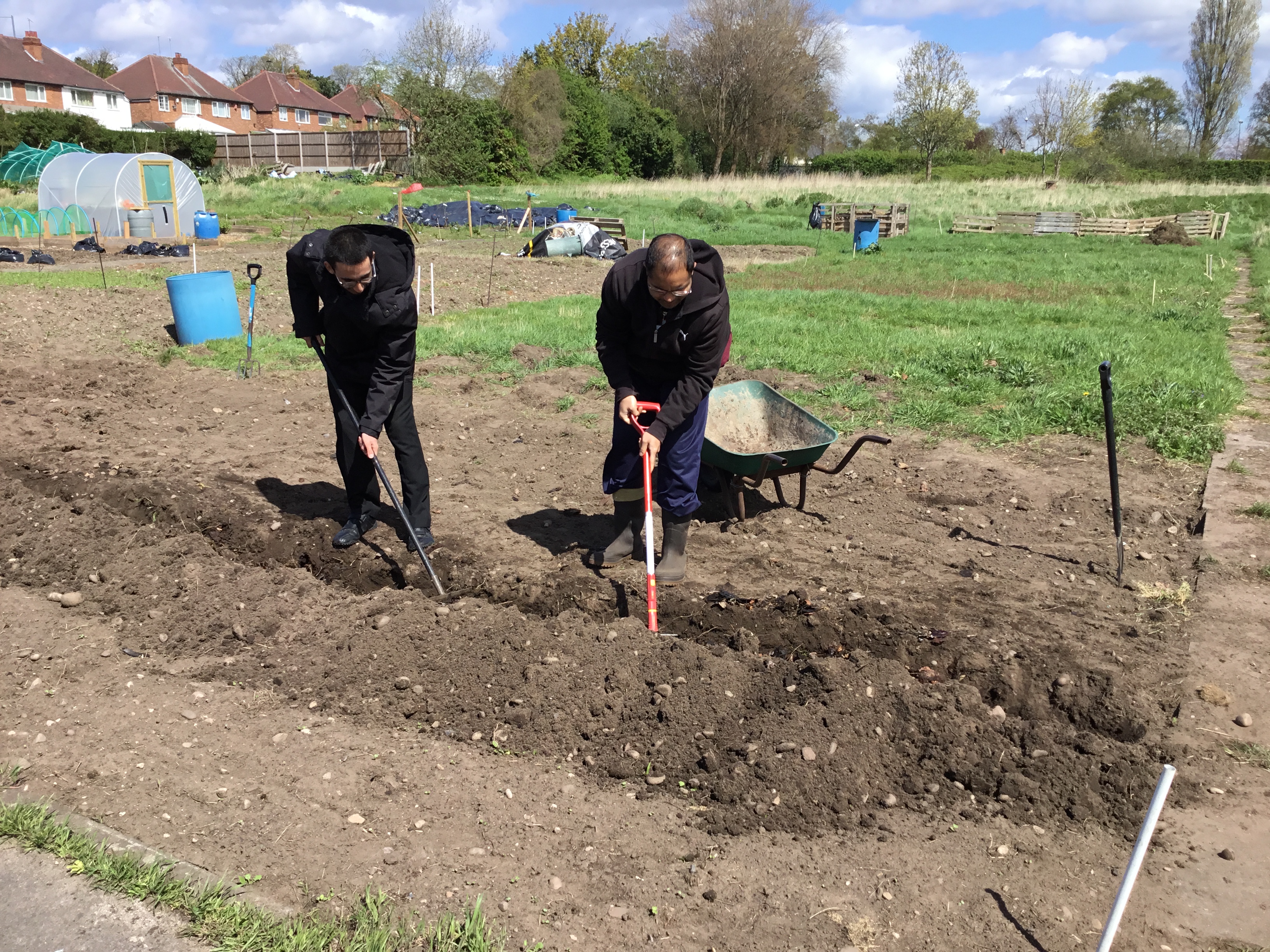 Thrive and Live working hard on the allotment! 27th April 2018 Shabaz AzeemLeave a comment Lots of digging and planting the potatoes in the sun